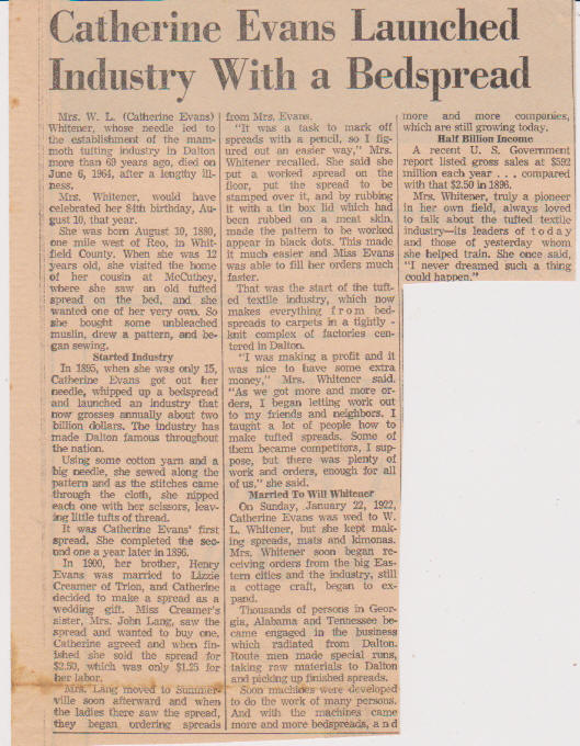 Articles on Catherine Evans Whitener, Shared by Vivian Cameron: