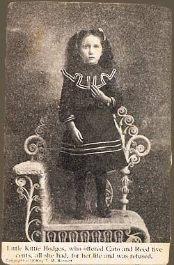 Tales circulated that Henry Hodges had buried his life savings, three hundred silver coins, in an iron kettle behind the chicken coop. The night before the murders, Hodges surprised Cato and Reed on his place. A quickly concocted story convinced Hodges of their innocence. The next night they returned at 8:00 p.m. to steal the silver treasure. After a struggle, Henry and Claudia Hodges were killed, and the two murderers fled.