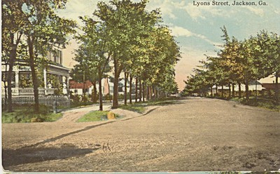 Ever since the war, Jackson has been progressing with little or no rapidity. Cut of from the outside world, with Griffin as the nearest railroad station, some twenty miles distance, she has dragged her slow length along quietly and silently, almost asleep. When the Griffin Monticello and Madison railroad was graded to Jackson, property looked up a little, but soon fell back to former values when the scheme fell through. New however, the times have changed, and as the Brunswick extension passes right through the town the prospects are that the boom already started will continue. It is estimated that the population, which is now about 300, will triple itself within twelve months and as a consequence, property is going up at a board.