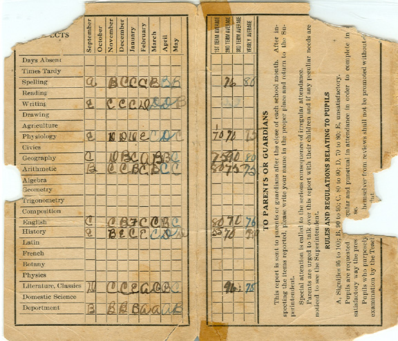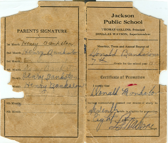 Front of Report Card for James Donald Bankston, son of Henry Bankston.