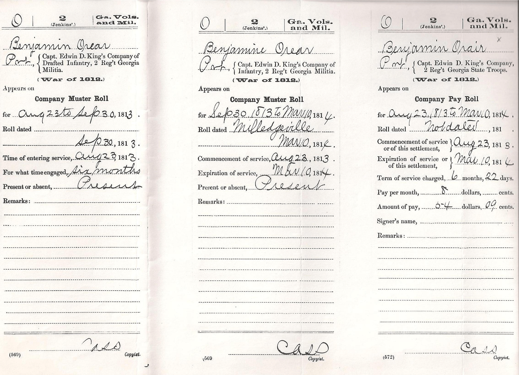 Benjamin O'Rear, a veteran of the War of 1812, and his father, Daniel