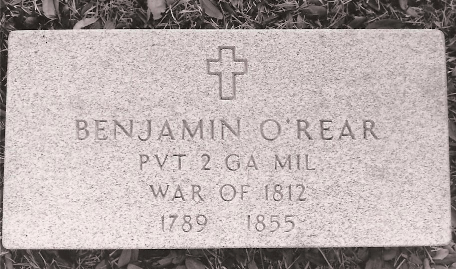 Benjamin O'Rear was born circa 1789 in North Carolina and died in 1855 in Chattooga County, Georgia.