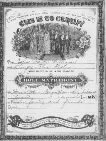 Were married at home in Athens, Georgia on 31st day of August, 1891.