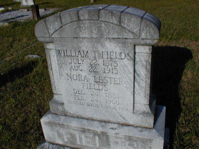 | Fields | Nora Lester | Dec 24 1881 | Feb 24 1968 | shared stone w/William T. Married Wylie T. Nash 1919 |