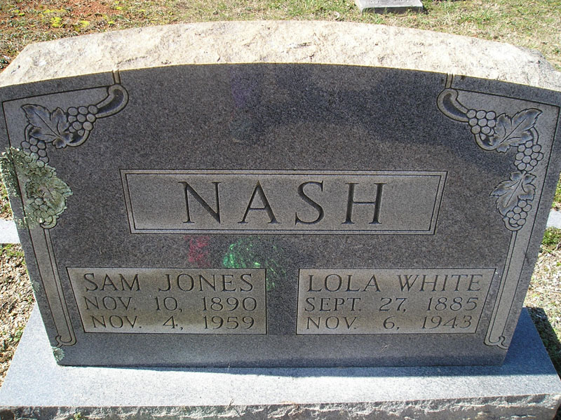 | Nash | Sam Jones | Nov 10 1890 | Nov 4 1959 | shared stone w/Lola W. |