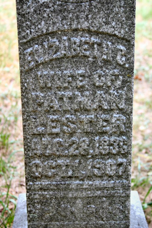 | Lester | Elizabeth C. | Aug 28 1836 | Oct 2 1907 | w/o Pattman |