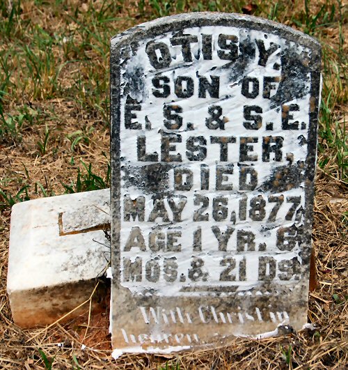 | Lester | Otis Y. | May 26 1877 | s/o E.S. & S.E. Aged 1y 6m 21d | |
