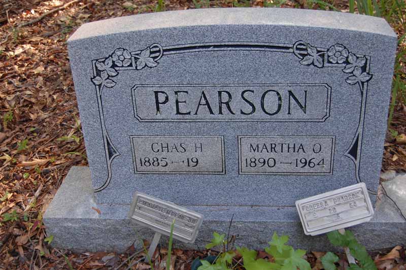 | Pearson | Martha Odessa | Sep 18 1890 | Sep 20 1964 | shared stone w/Chas. H. |