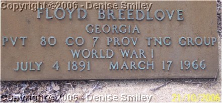 Breedlove, Floyd 04 Jul 1891 17 Mar 1966 GA - PVT - 80 Co. 7th Prov Tng