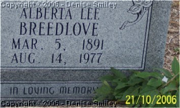 Unreadable Unreadable 046 Breedlove, Alberta Lee 05 Mar 1891 14 Aug 1977