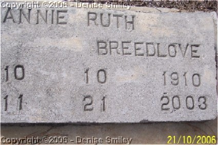 049 Breedlove, Amos 25 Feb 1912 24 Feb 1953 053 Breedlove, Annie Ruth 10