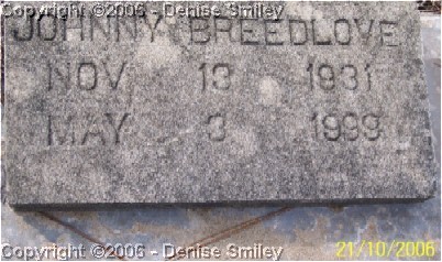 Breedlove Family Cemetery Transcribed: 21 Oct 2006 By: