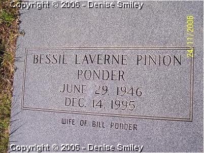BESSIE LAVERNE PINION PONDER 29 JUN 1946 - 14 DEC 1995 WIFE OF WILLIAM "BILL" PONDER