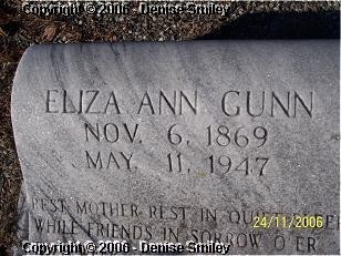 ELIZA ANN GUNN 6 NOV 1869 - 11 MAY 1947