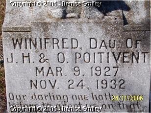 WINIFRED POITIVENT DAUGHTER OF J. H. & O. POITIVENT 9 MAR 1927 - 24 NOV 1932
