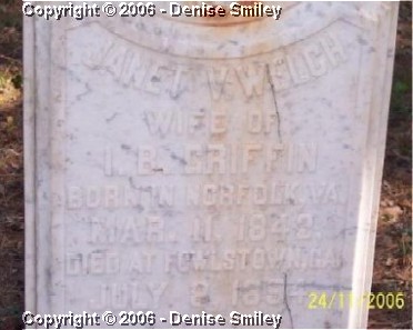 18 Griffin, Janet V. Welch 11 Mar 1842 08 Jul 1894 Born at Norfolk, Va