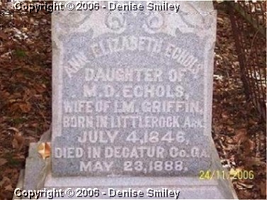 Griffin, Ann Elizabeth Echols 04 Jul 1846 23 May 1888 Born in Little Rock,