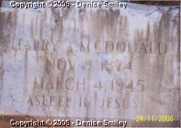 HARRY A. MCDONALD 9 NOV 1874 - 4 MAR 1945 HUSBAND OF INEZ GRIFFIN
