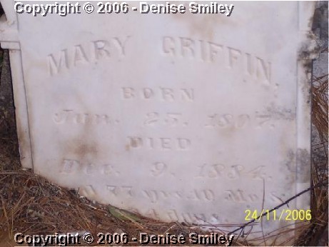 MARY GRIFFIN 25 JUN 1807 - 9 DEC 1884 AGE 77 YRS, 10 MOS, & 14 DAYS
