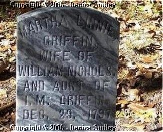 MARTHA LINNIE GRIFFIN NO DATES - 29 DEC 1797 WIFE OF WILLIAM NICHOLS & AUNT OF I. M. GRIFFIN