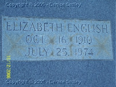 ELIZABETH ENGLISH 16 OCT 1910 - 25 JUL 1974