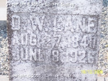 D. W. LANE 27 AUG 1840 - 8 JUN 1926 HUSBAND OF MARY L. LANE