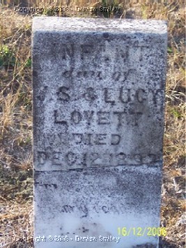 INFANT DAU OF J. S. & LUCY LOVETTE DIED: 12 DEC 1892
