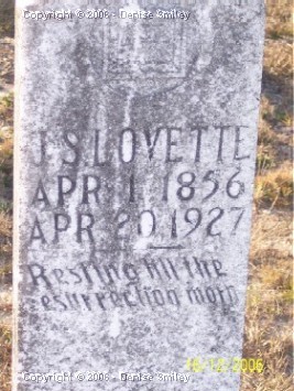 J. S. LOVETTE 1 APR 1856 - 20 APR 1927 HUSBAND OF LUCY LOVETTE MARRIED: 28 JAN 1892 IN DECATUR CO., GA BOOK B, PAGE # 734