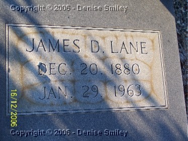 JAMES D. LANE 20 DEC 1880 - 29 JAN 1963 HUSBAND OF ESTELLE CLAY LANE MARRIED: 10 JAN 1904 IN DECATUR CO., GA BOOK D, PAGE # 565
