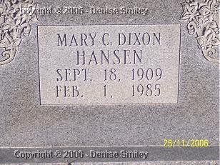 MARY C. DIXON HANSEN 18 SEP 1909 - 1 FEB 1985