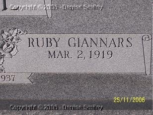 RUBY GIANNARS EZELL 2 MAR 1919 - NO DATES WIFE OF DAVID C. EZELL MARRIED: 9 OCT 1937 IN DECATUR CO., GA BOOK K, PAGE # 12