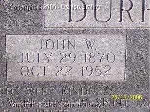 JOHN W. DURHAM 29 JUL 1870 - 22 OCT 1952 HUSBAND OF SALLIE A. DURHAM