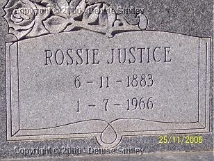 ROSSIE JUSTICE DURHAM 11 JUN 1883 - 7 JAN 1966 WIFE OF WILLIAM J. DURHAM MARRIED: 21 DEC 1905 IN DECATUR CO., GA BOOK D, PAGE # 734