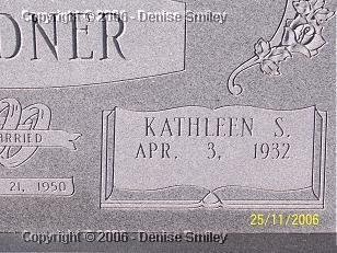 KATHLEEN S. GARDNER 3 APR 1932 - NO DATES WIFE OF RUFUS GARDNER MARRIED: 21 NOV 1950