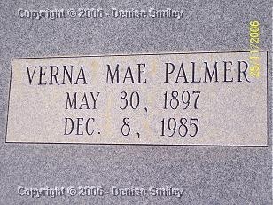 VERNA MAE PALMER 30 MAY 1897 - 8 DEC 1985 WIFE OF FREEMAN PALMER MARRIED: 5 SEP 1915 IN DECATUR CO., GA BOOK E, PAGE # 742