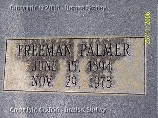 FREEMAN PALMER 15 JUN 1894 - 29 NOV 1973 HUSBAND OF VERNA MAE DIXON PALMER MARRIED: 5 SEP 1915 IN DECATUR CO., GA BOOK E, PAGE # 742