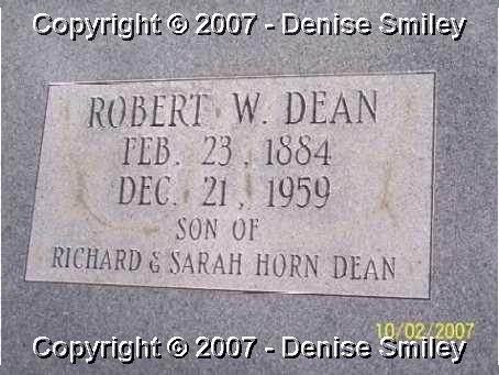 ProsperityPB_061.jpg (454 x 341) 34KB  ROBERT W. DEAN 23 FEB 1884 - 21 DEC 1959 SON OF RICHARD & SARAH HORN DEAN