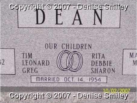 ProsperityPB_083.jpg (454 x 341) 36KB  LEONARD C. & MARGIE FAIRCLOTH DEAN FAMILY NAME PLATE MARRIED: 14 OCT 1954 OUR CHILDREN: TIM, LEONARD, GREG, RITA, DEBBIE & SHARON
