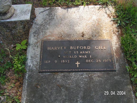 Harvey Buford Gill Sgt U S Army World War I 09 Sept 1892 25 Dec 1979 |