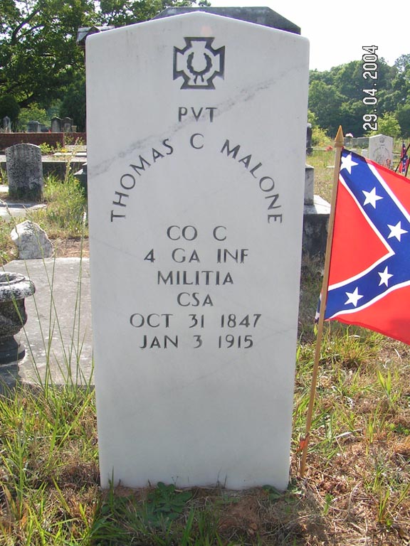 ![]() Thomas C. Malone Co. C, 4th GA Infantry Militia, CSA Oct 31, 1847 Jan 3, 1915 |