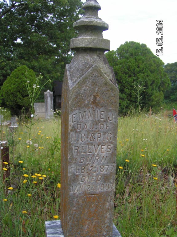 ![]() Emmie J., Dau of H. C. & P. C. Reeves Born Feb 2, 1877 Died Jan 24, 1907