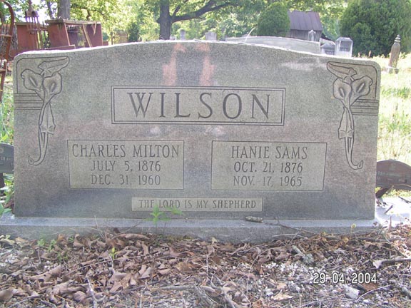 ![]() WILSON Charles Milton Wilson July 5, 1876 Dec 31, 1960 Hanie Sams Wilson Oct 21, 1876 Nov 17, 1965 |