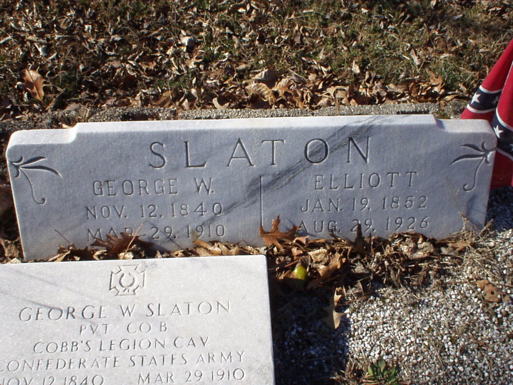 George Wilson Slaton Pvt Co. B, Cobb's Legion Cavalry b. 12 Nov 1840 d. 29 Mar 1910 Elliott Slaton b. 19 Jan 1852 d. 29 Aug 1926 |
