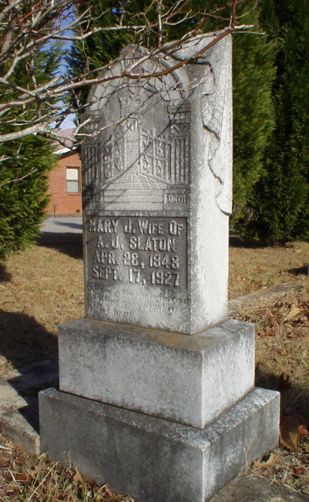 Mary J., Wife of A. J. Slaton b. 28 Apr 1848 d. 17 Sept 1927 |