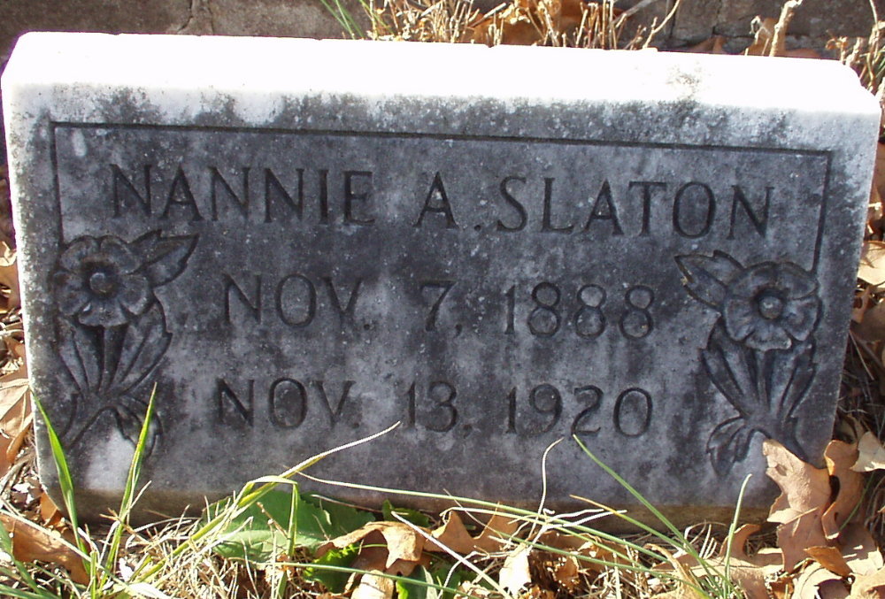 Nannie A. Slaton b. 07 Nov 1888 d. 13 Nov 1920 |