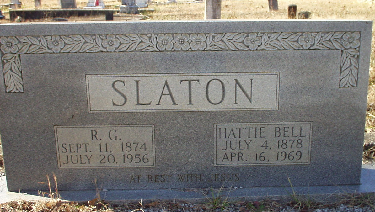R. G. Slaton b. 11 Sept 1874 d. 20 July 1956 Hattie Bell Slaton b. 04 July 1878 d. 16 Apr 1969 |