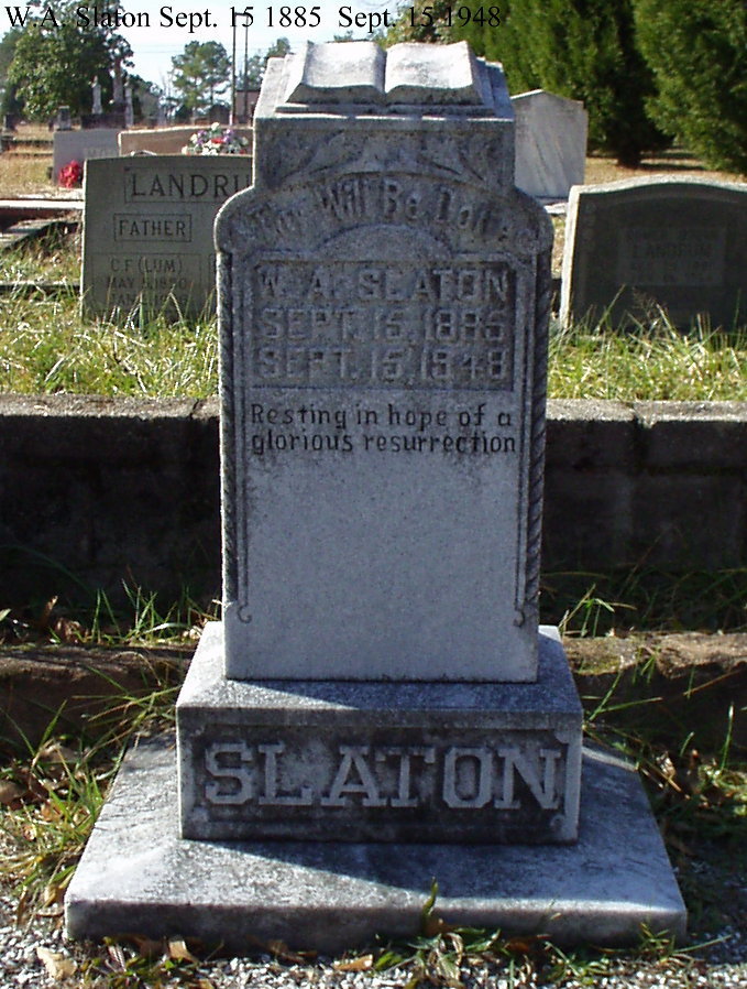 W. A. Slaton b. 15 Sept 1885 d. 15 Sept 1948 |