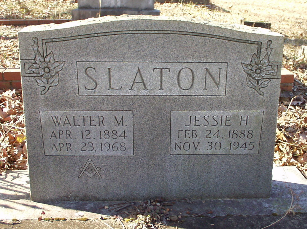 Walter M. Slaton b. 12 Apr 1884 d. 23 Apr 1968 Jessie H. Slaton 24 Feb 1888 30 Nov 1945 |
