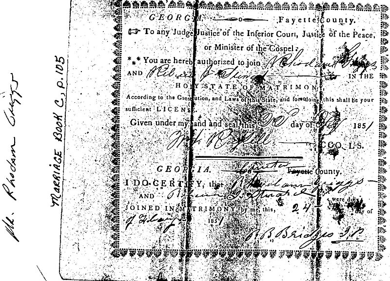 Apparently applied for license in Fayette County, Ga and were married in Coweta County, Ga. See where Fayette is marked through and replaced with Coweta at bottom of marriage license in area for actual marriage information. This record is filed in Fayette County, Ga records.
