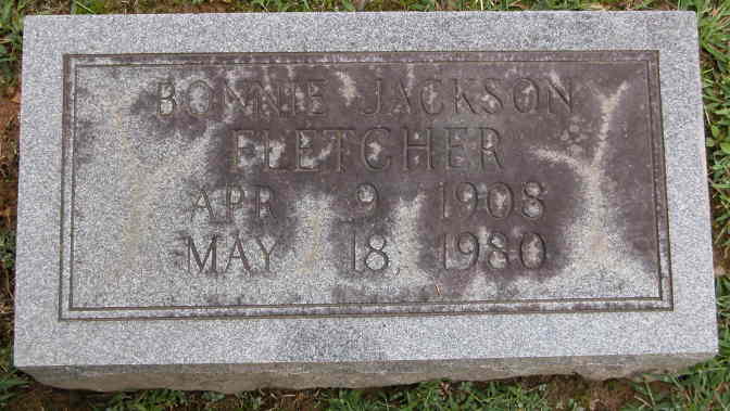Bonnie Jackson Fletcher April 9, 1908 May 18, 1980 (this tombstone is in the Kiker plot) |